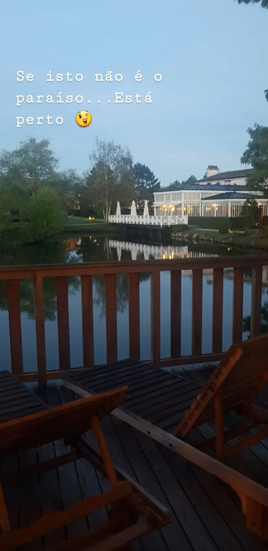 A apresentadora mostrou a cabana natural e revelou: «Acho que vou ter bons sonhos», mais tarde partilhou outra fotografia onde se apresenta de roupão branco e sem maquilhagem explicando: «Sem artifícios. Apenas paz. E uma massagem».
