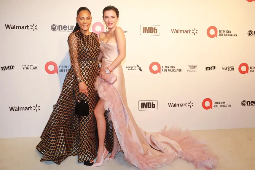 Na after-party Elton John AIDS Foundation, a apresentadora do programa Tu Consegues posou ao lado da atriz Bella Thorne num evento que juntou nomes como Sharon Stone. Donatella Versace, Jennifer Aniston, Joaquin Phoenix e Brad Pitt.