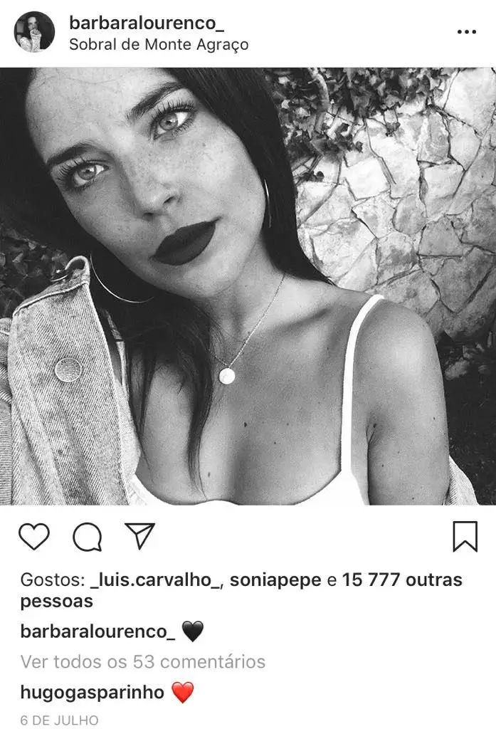 Bárbara Lourenço, de 25 anos, tem um novo amor e já não o esconde do público. Apesar de não ter assumido publicamente a relação, a atriz tem trocado muitos comentários e corações no Instagram com Hugo Gasparinho.