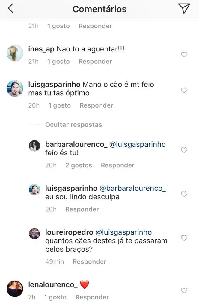 Numa foto publicada por Hugo, em que aparece com o cão da atriz, Bárbara comenta “os meus rapazes”, com um coração, reforçando as suspeitas de relação.
